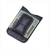 Fine-grain leather men’s money clip features an easy-access credit card pouch. 3 inches x 1 inches x 4 1/8 inches high.
